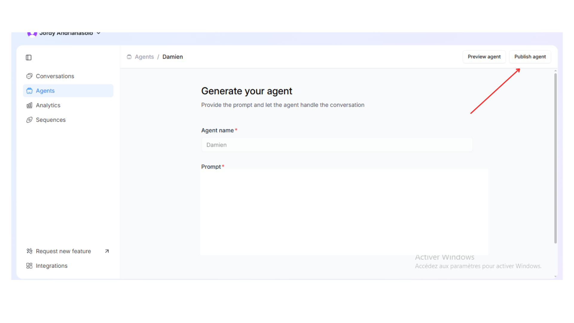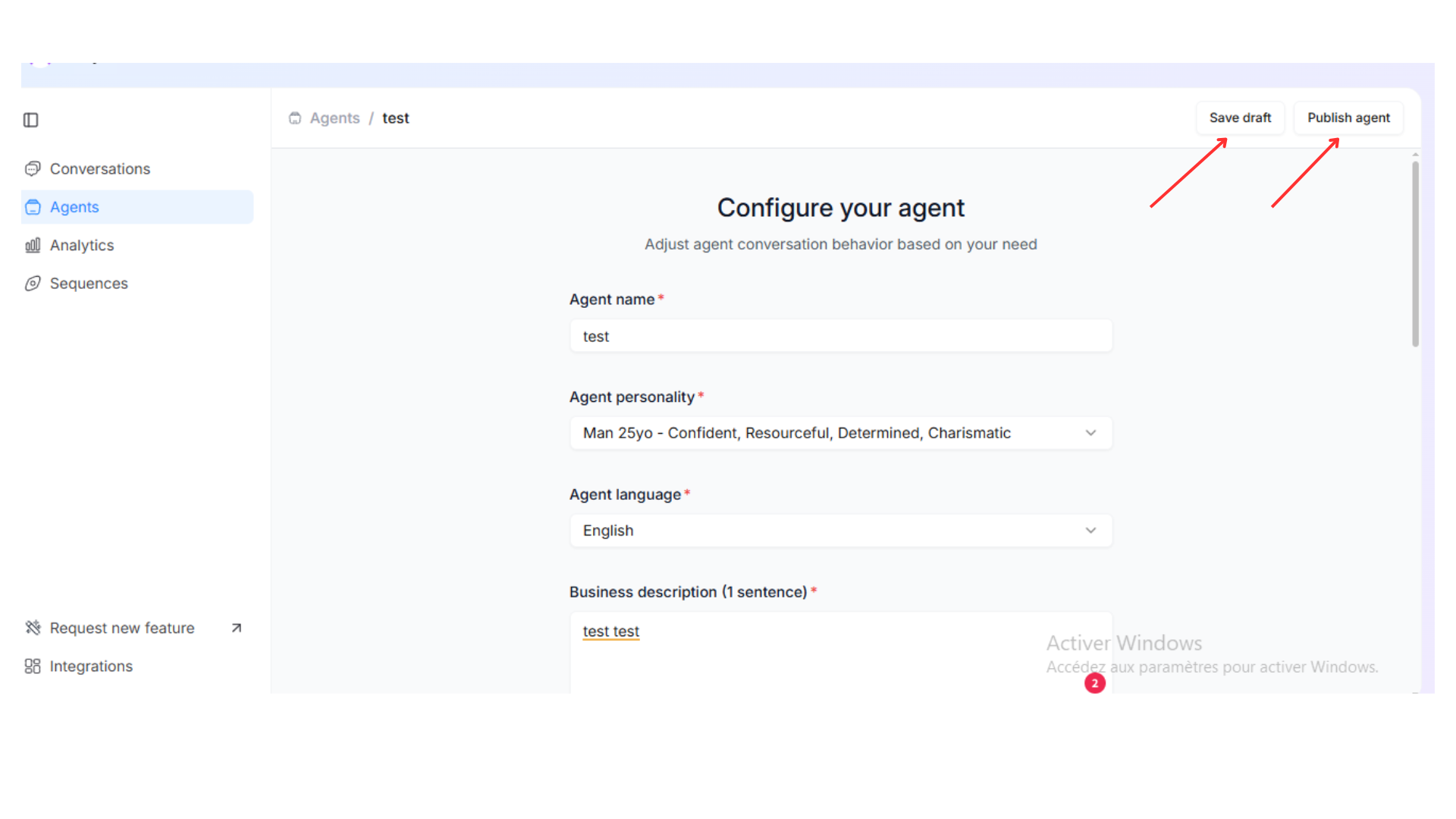 - Click on âSave draftâ and âPublish agentâ (top right) to finalize and add it to your list
