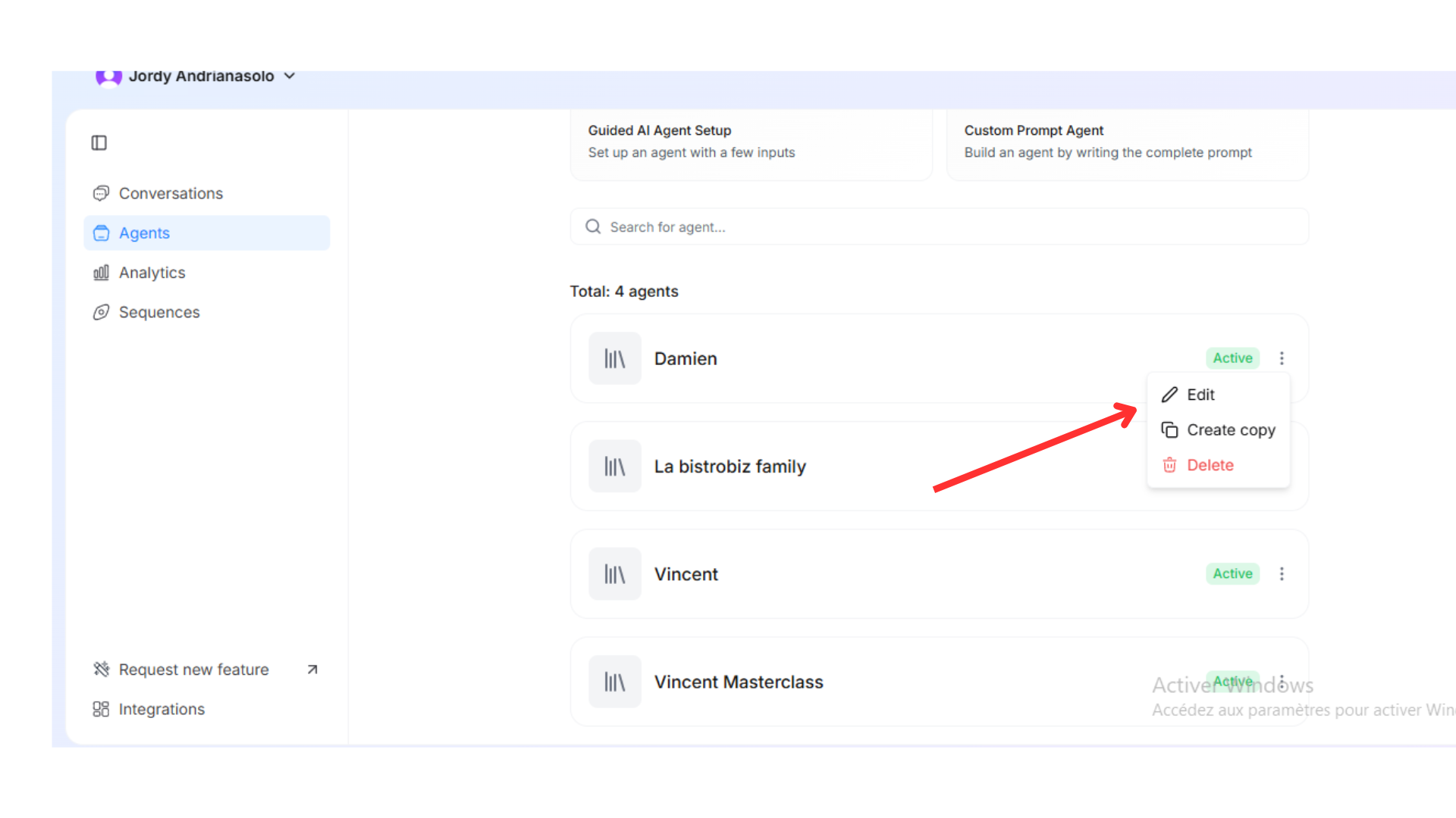 You can modify an agentâs details at any time to better suit your needs:- Locate the agent in the list on the Agents page