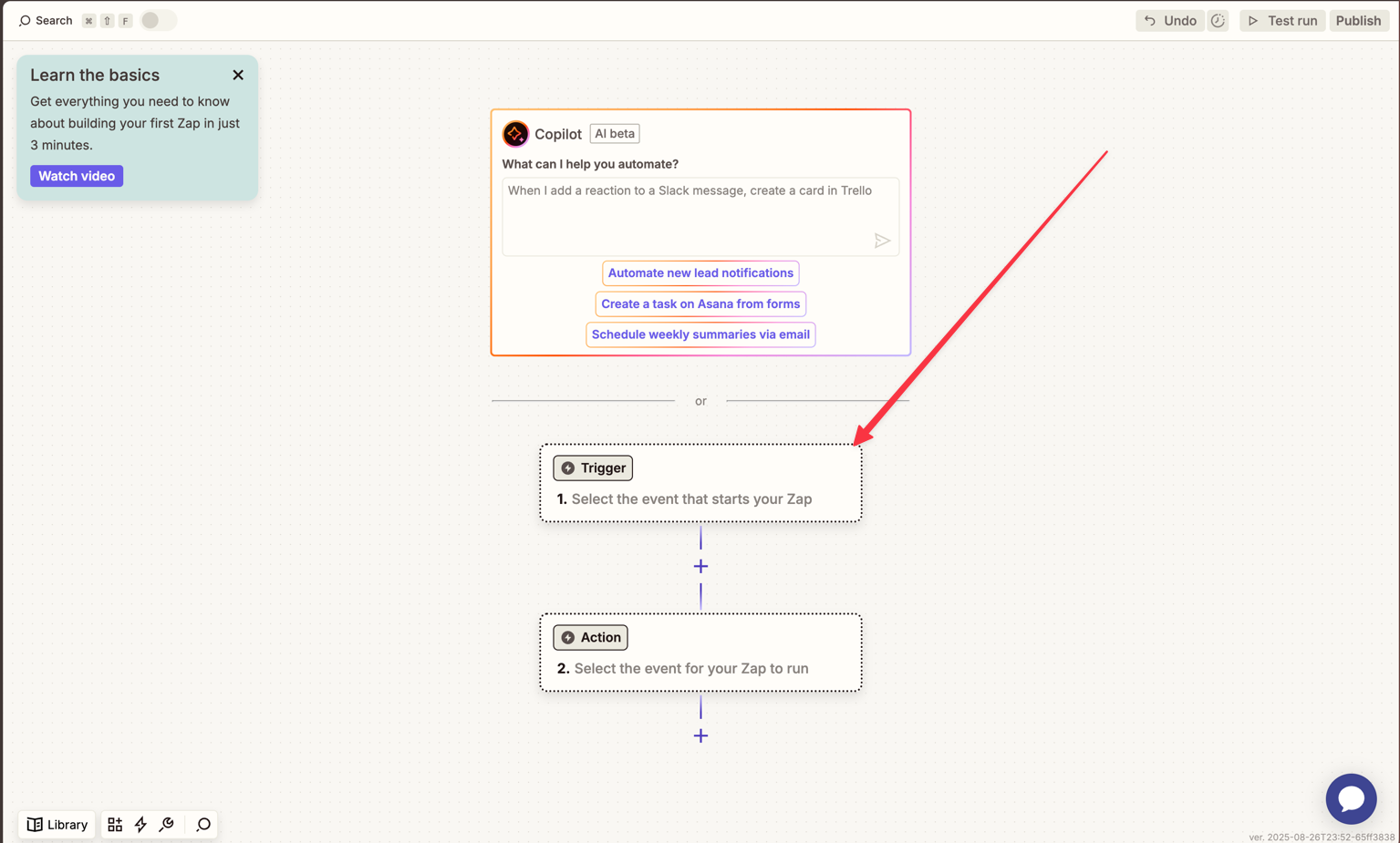 In Zapier, select the source of your leads, such as:- Facebook Lead Ads (form)