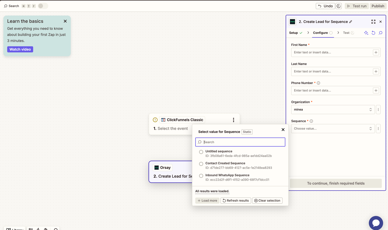 - From now on, every lead captured from Zapier will automatically flow into Orsay and be placed into the correct WhatsApp sequence.