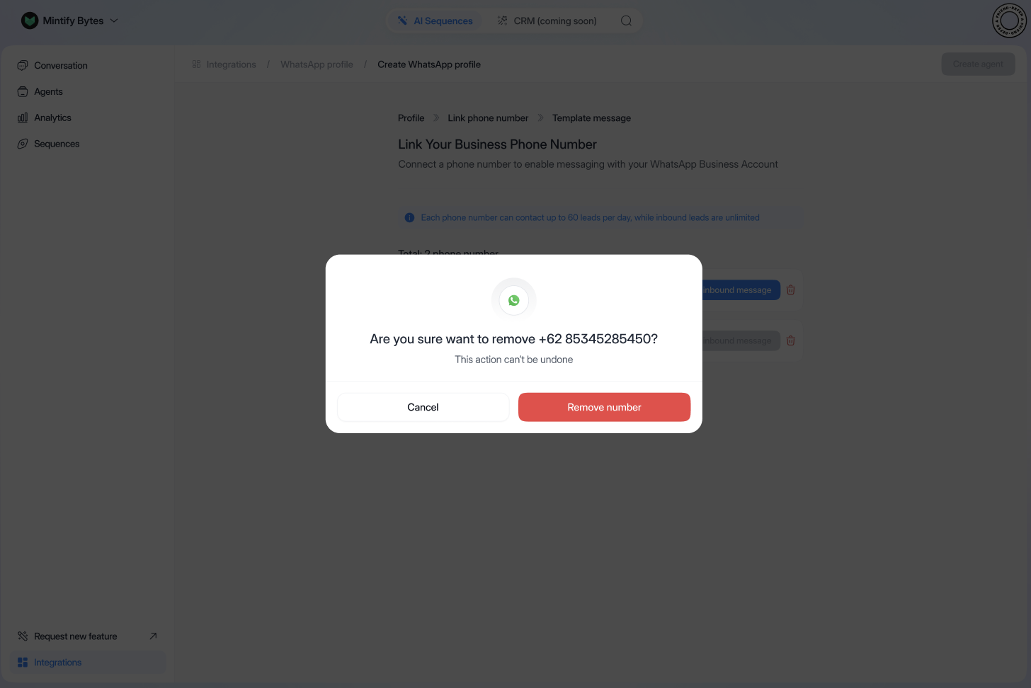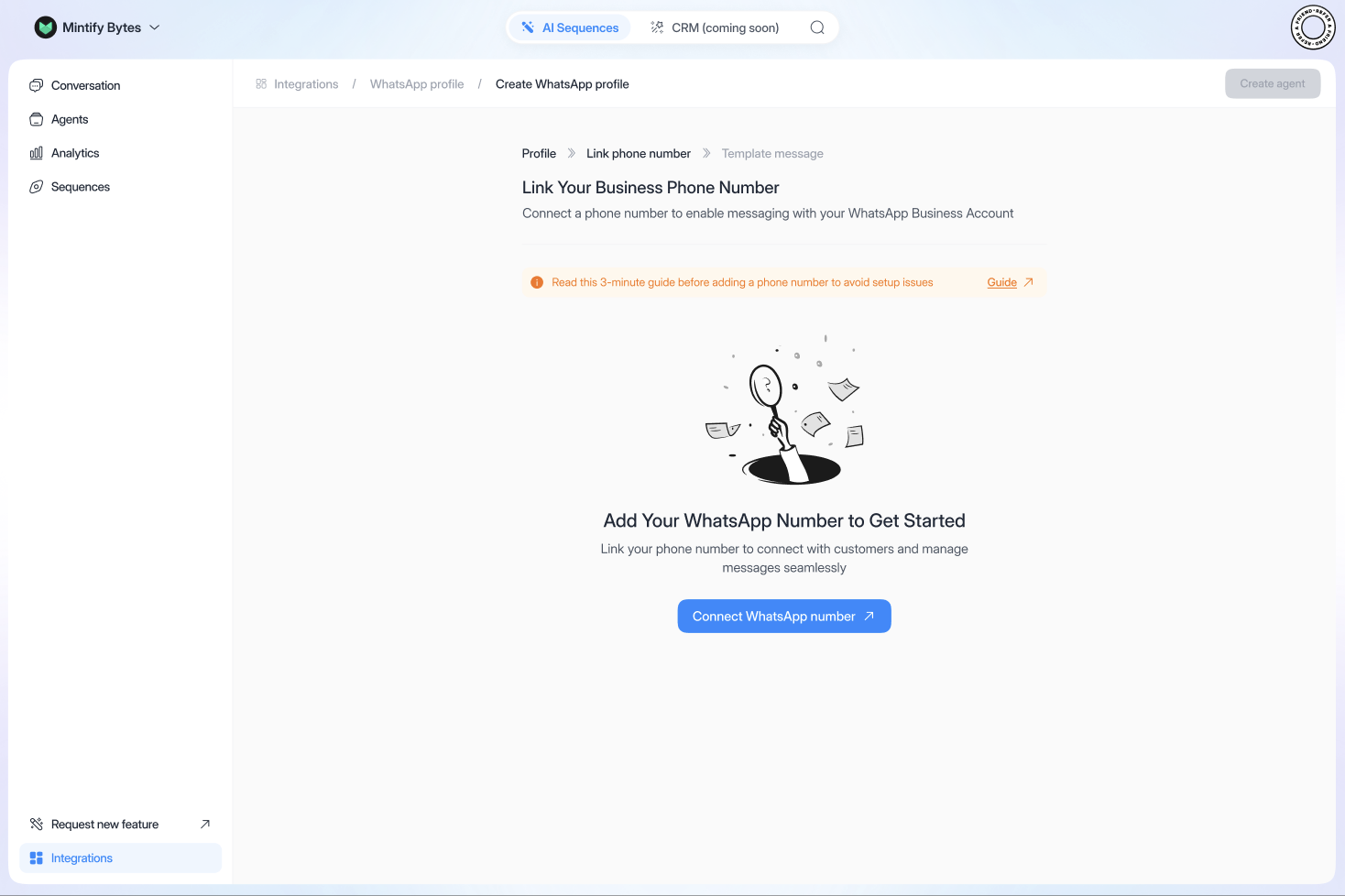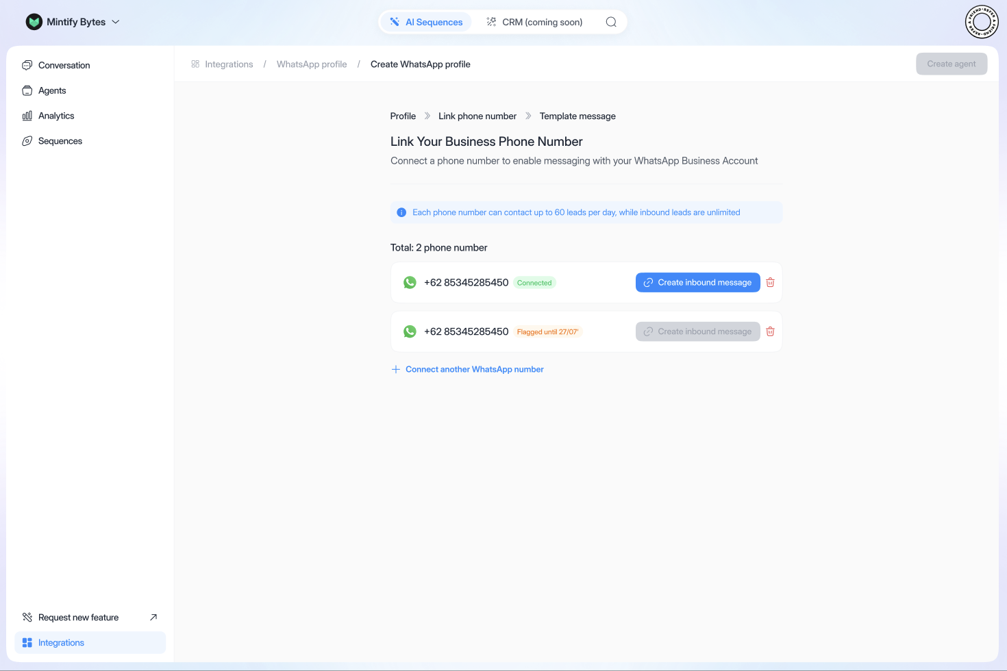 - Click on “Connect WhatsApp number”