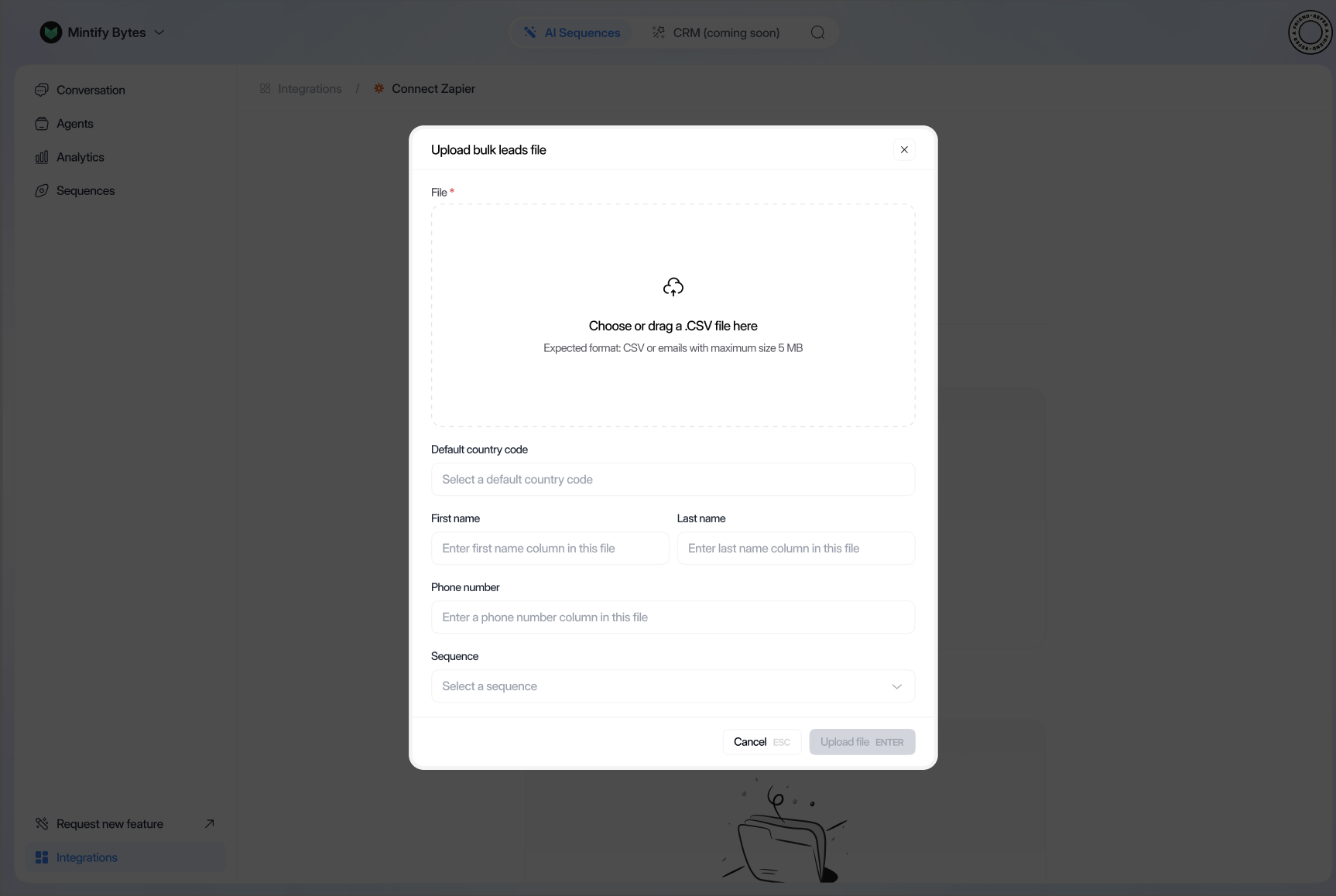 - Click on “Bulk Leads”, “Upload files”
