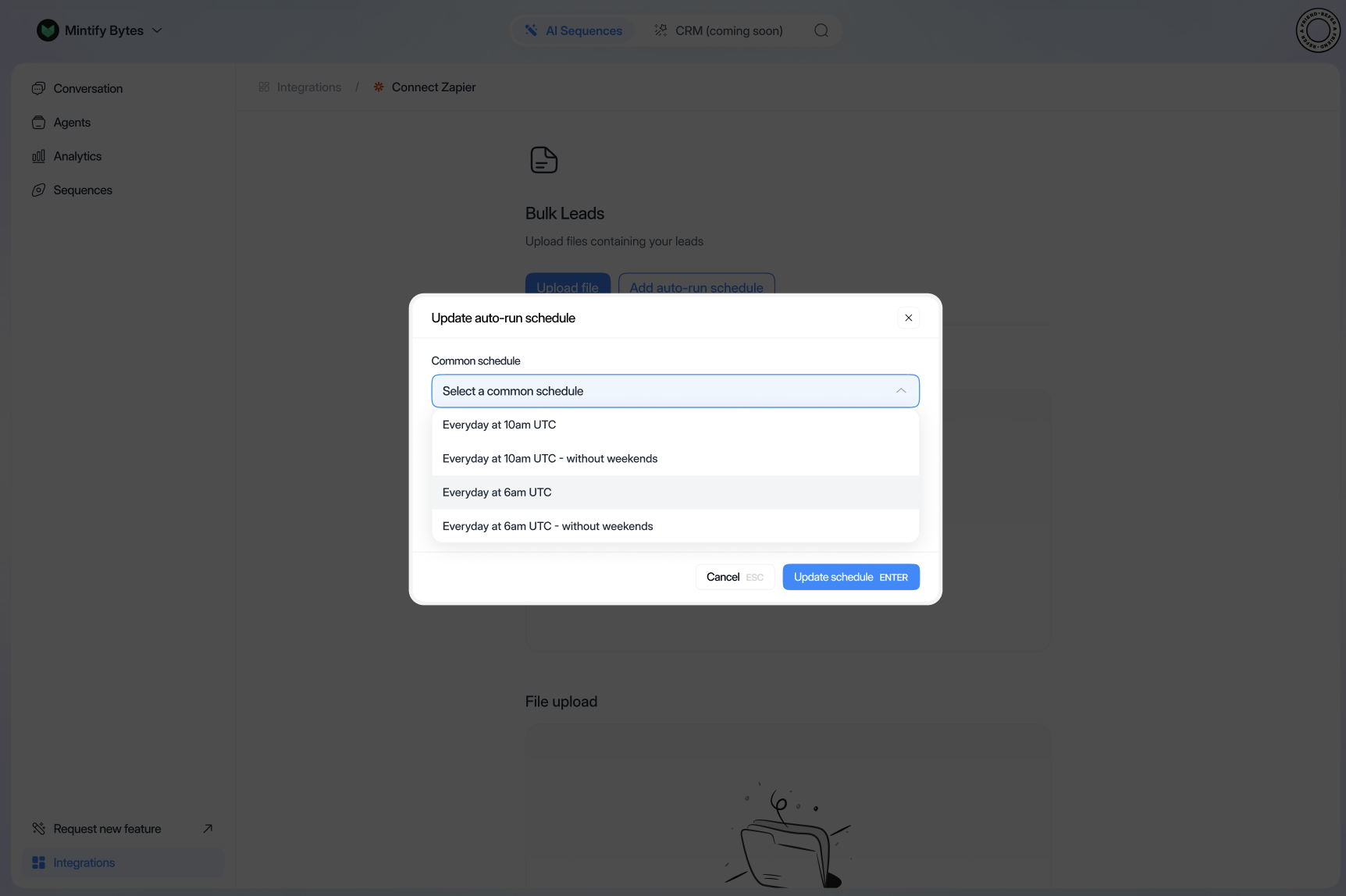 - Click on “Update schedule”
