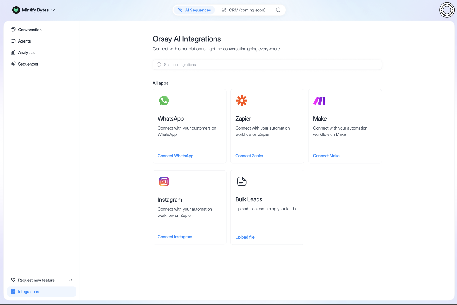 - Click on “WhatsApp”, “Connect WhatsApp”