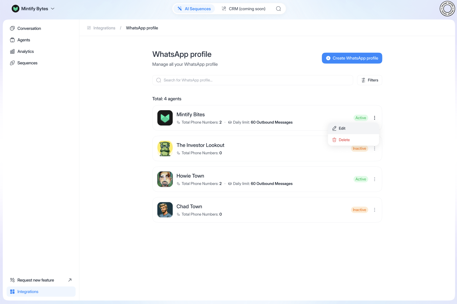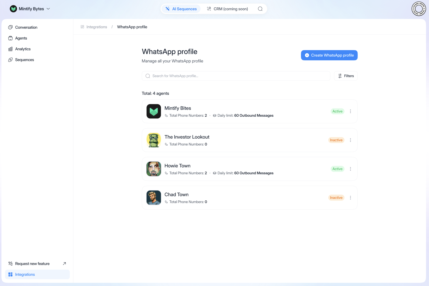 - Then on “Create WhatsApp profile”