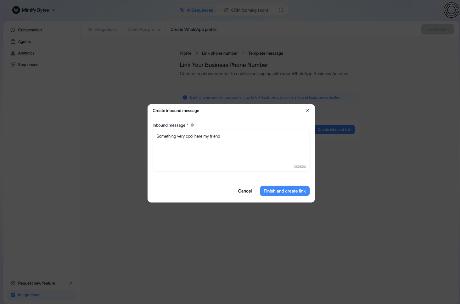 - Once back in app.orsay.ai, click on “Create inbound message”