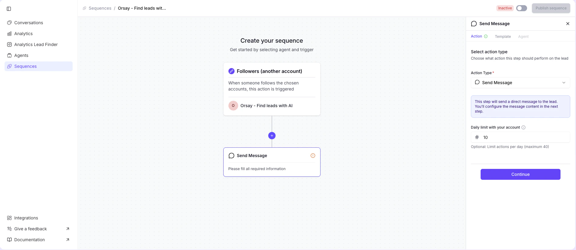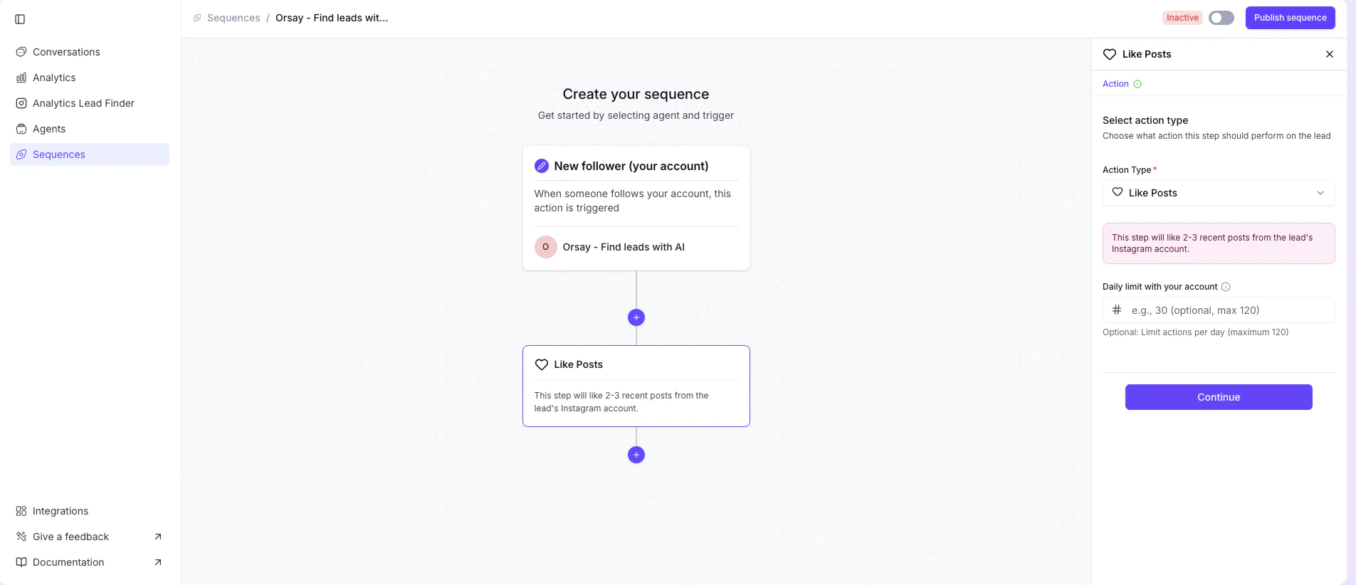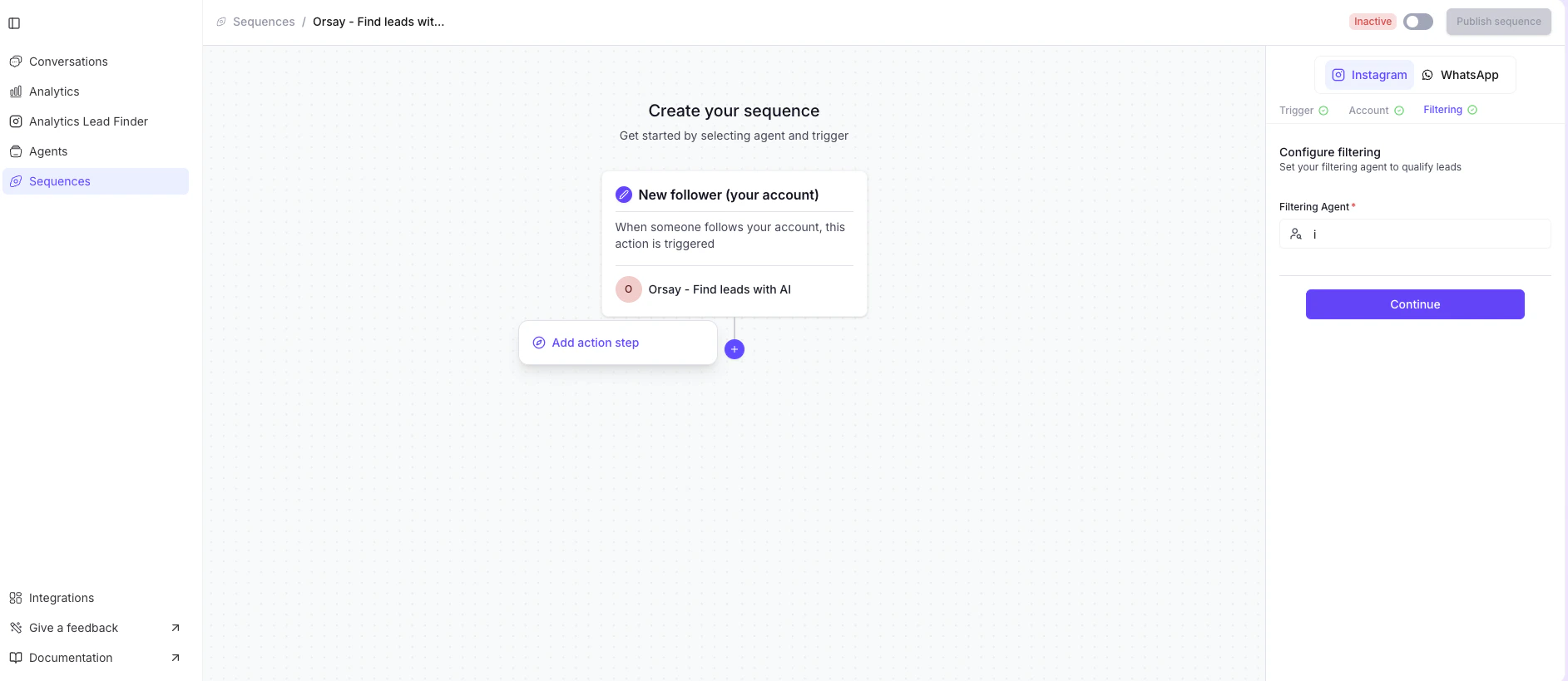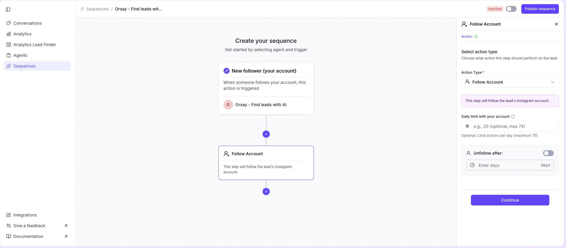 Orsay AI automates Instagram lead generation by proactively finding and engaging qualified prospects from your competitors’ audiences. Instagram Outbound Features:- Smart Follower Targeting: AI filters competitors’ followers to engage only business-relevant profiles