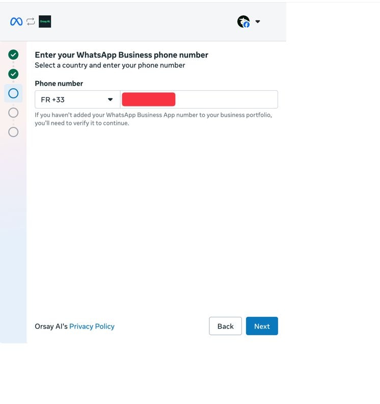 - You will need to add a phone number (that is not connected to any WhatsApp yet). We recommend using On Off Business to get a phone number easily.
