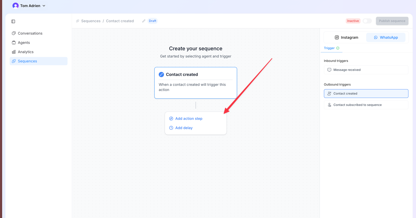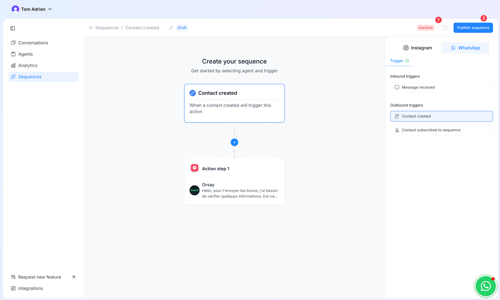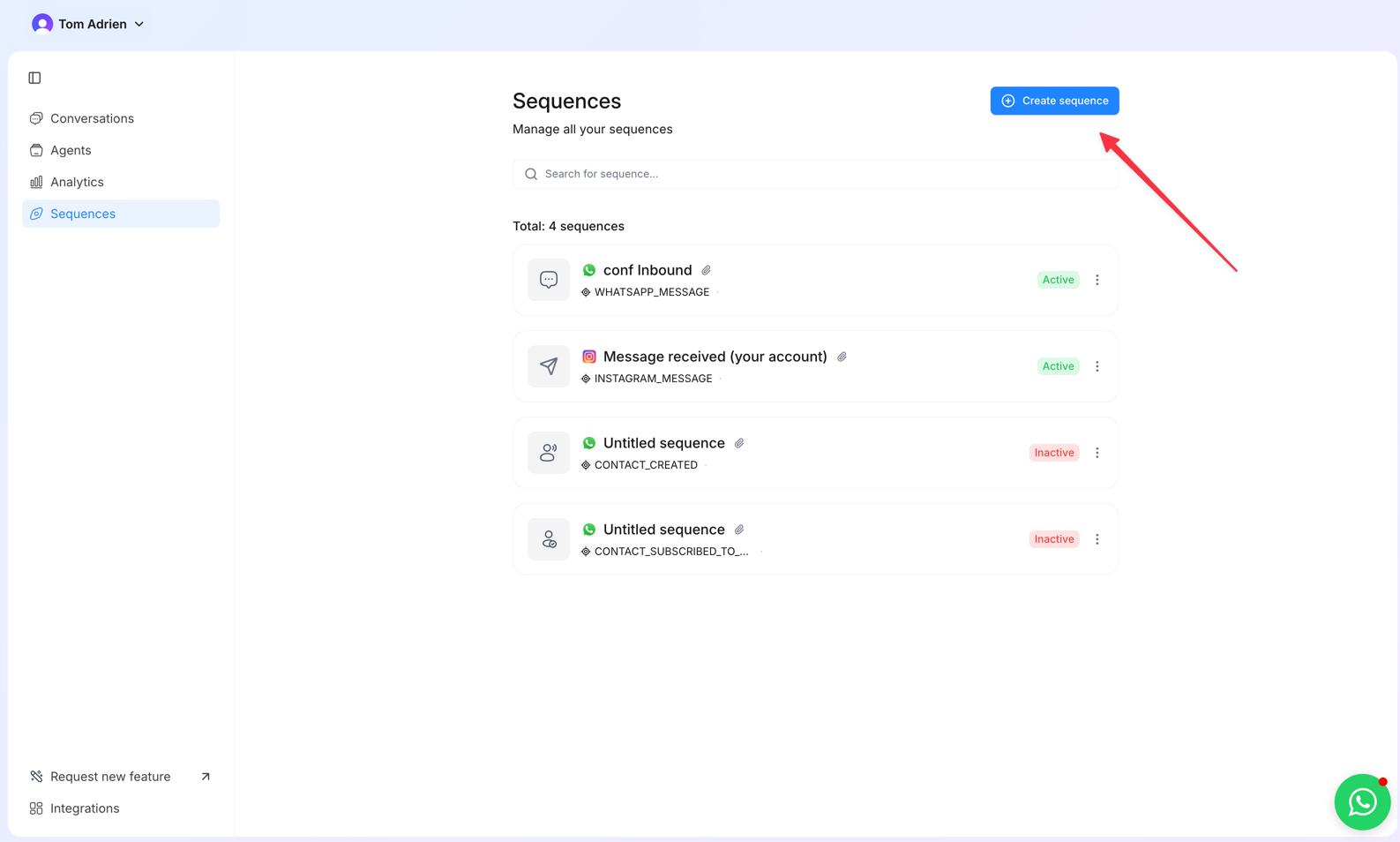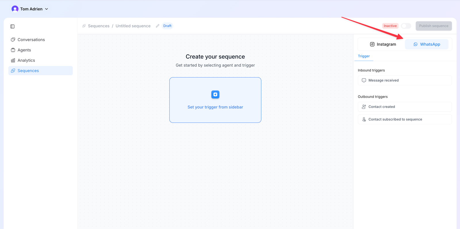 - Message received → The sequence will start each time a new lead sends a message to your number.
