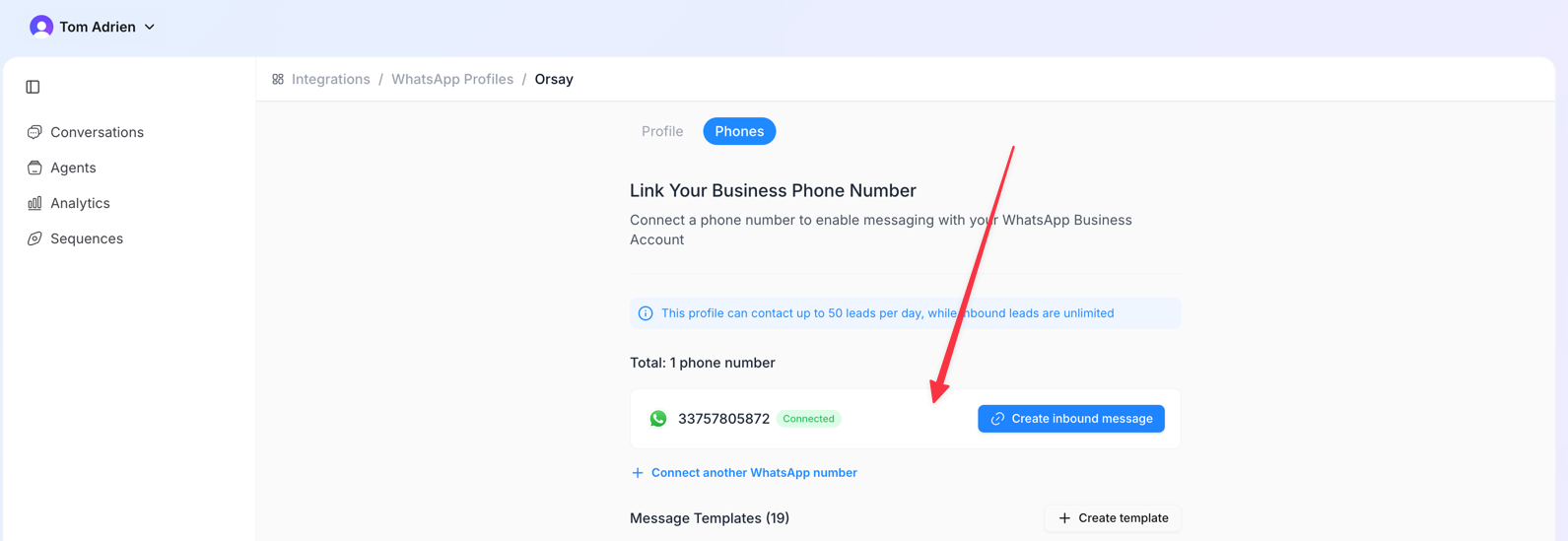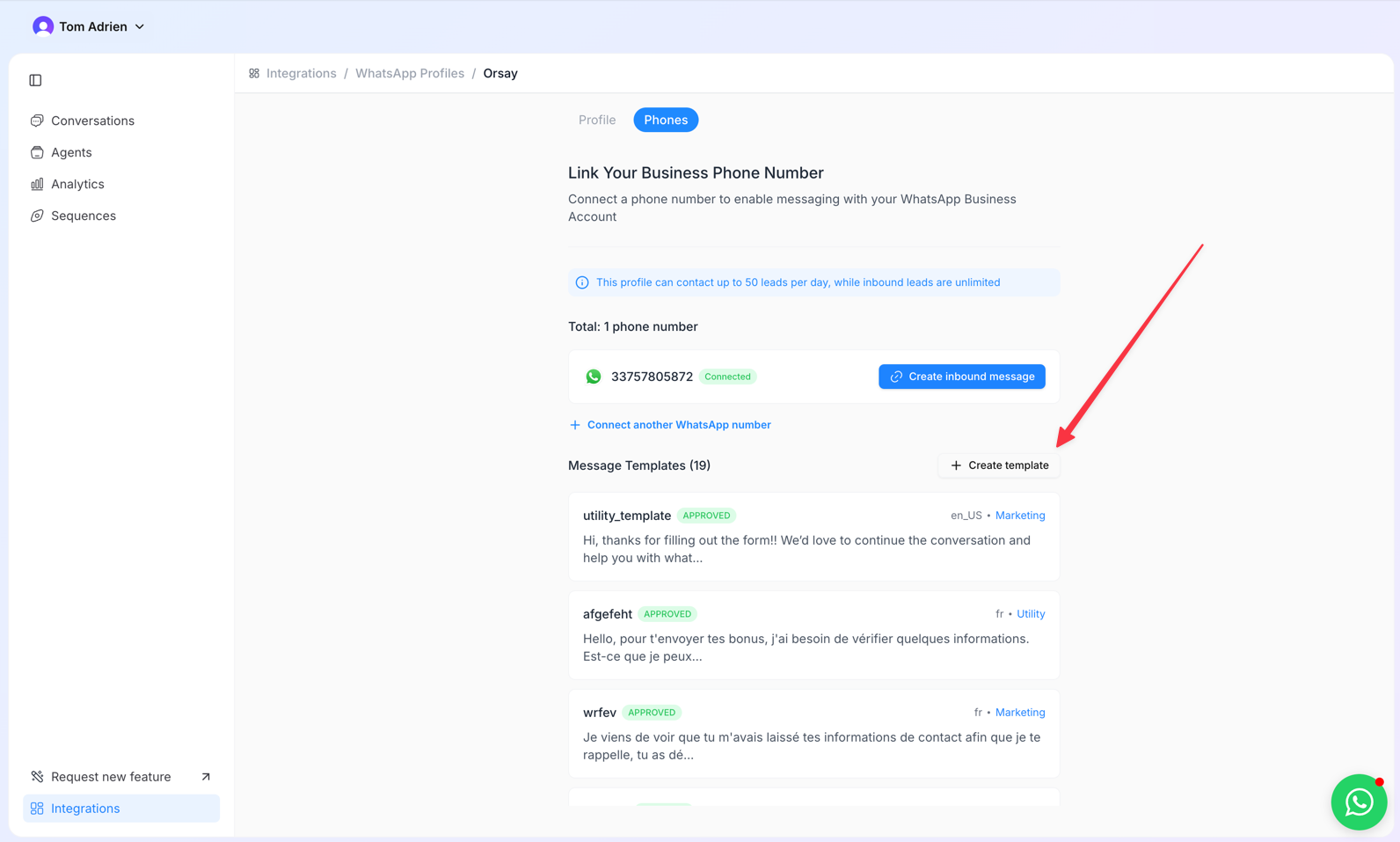 - You can now create template messages that you will use in the Step 3: Create a Sequence section.