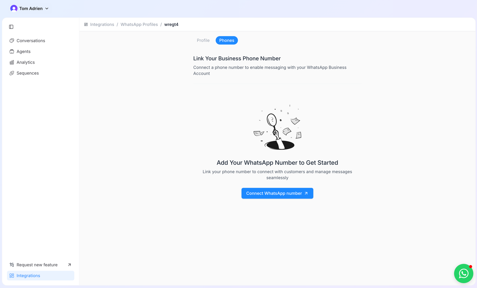 - Click on “Connect WhatsApp number”