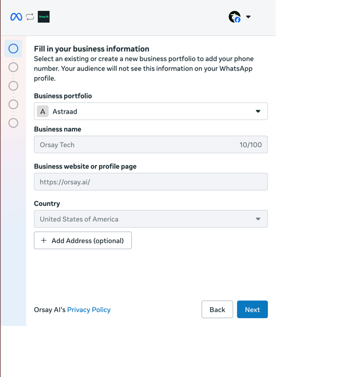 - Then, create a new WhatsApp Business Account