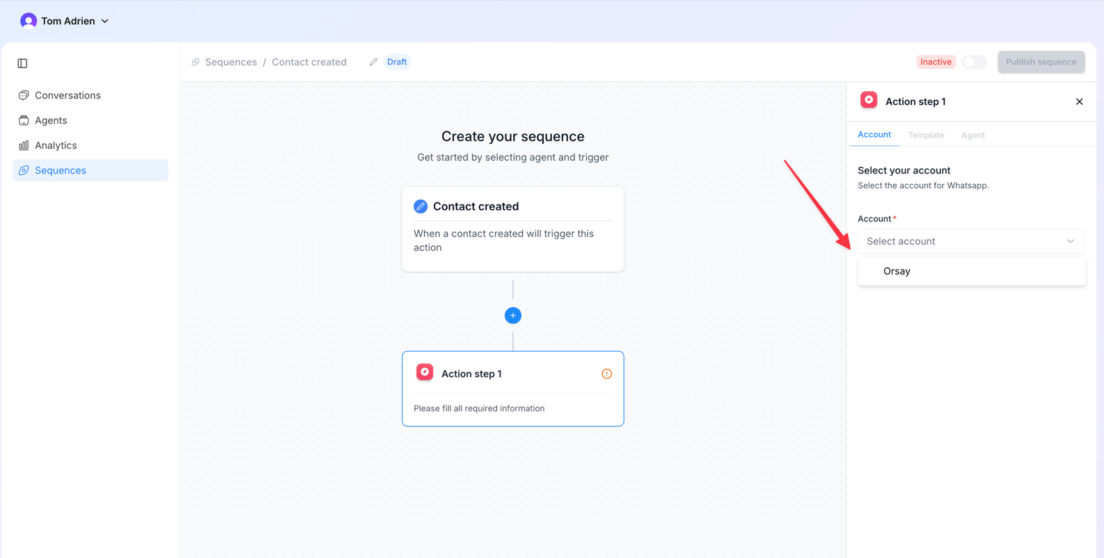 - Then toggle on the sequence and publish it.