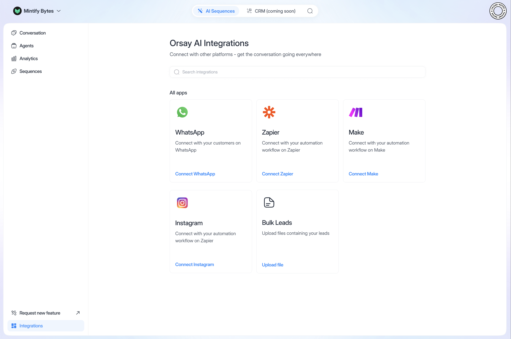 - CRM Integrations: Native connection with Zapier and other CRMs.